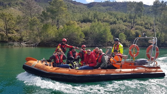 La subdelegada del Gobierno en Guadalajara, Mercedes Gómez, ha visitado la actividad de rescate y evacuación por vía acuática, acompañada por el teniente coronel jefe del BIEM I, Alberto Modino.