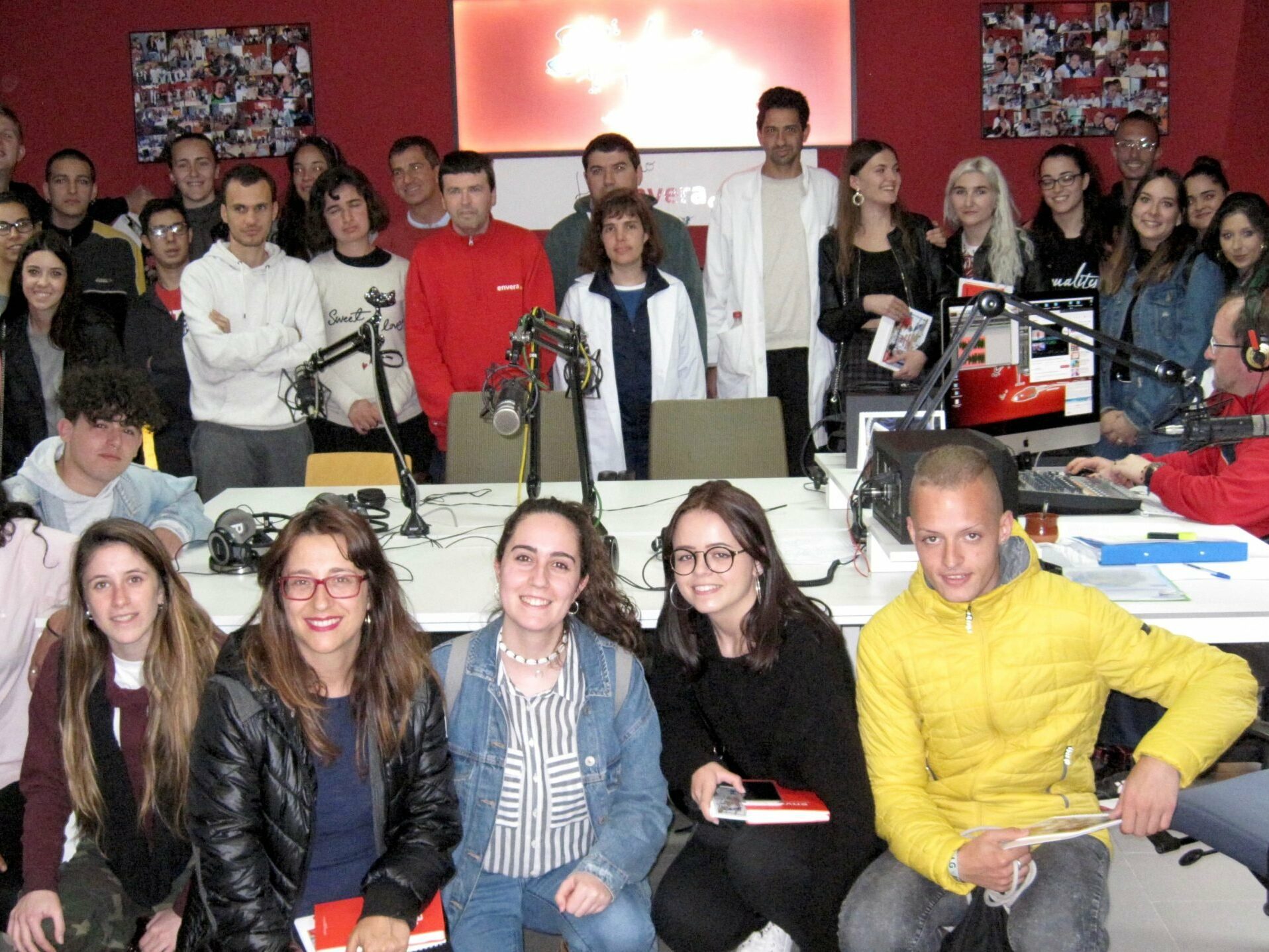 Desde Cesur Formación hemos recibido la grata visita de veinticinco personas, entre responsables y alumnos, dispuestos a conocernos de cerca para tener una experiencia directa e intensa que posiblemente influirá en su futuro profesional. Así que no mentimos cuando decimos que, en nuestro estudio de Radio Terrícola, hemos sido invadidos por una auténtica avalancha humana, eso sí, con mucho respeto y cariño.