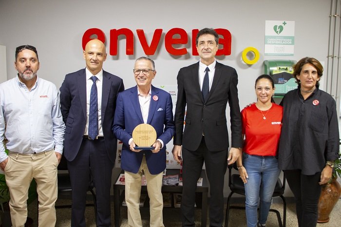 El vicepresidente de Retail Banking de BBVA Asset Management, Juan Antonio Sánchez, y el director territorial de BBVA en Canarias, Quim Soler, han visitado el pasado martes la delegación de Envera en Tenerife para conocer de primera mano la labor social que esta ONG, nacida de la compañía Iberia hace 47 años, lleva a cabo para fomentar el empleo, la formación y la inclusión social de personas con discapacidad.