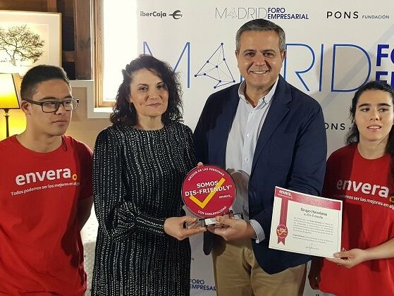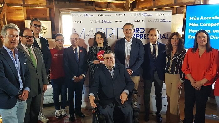 El reconocimiento ha sido entregado este viernes en la Jornada ‘Más Accesibilidad, Más Competitividad. Itevelesa, una empresa Dis-Friendly’ organizada por Madrid Foro Empresarial y Envera en la sede de la Fundación Pons y que ha contado, además de con el consejero y presidente del Consejo para la Promoción de Accesibilidad y Supresión de Barreras, Jorge Rodrigo, con el director general de Transportes y Movilidad de la Comunidad de Madrid, Luis Miguel Torres; el vicepresidente de Madrid Foro Empresarial, Pedro Carrillo; la manager de Impacto Social de Iberia, Ainhoa Serrano; el director general de Envera, Enrique Grande, quien también coordina la Mesa de Responsabilidad Social Competitiva de Madrid Foro Empresarial; y el presidente de FAMMA, Javier Font; entre otros representantes de empresas como Coca-Cola e Ibercaja.