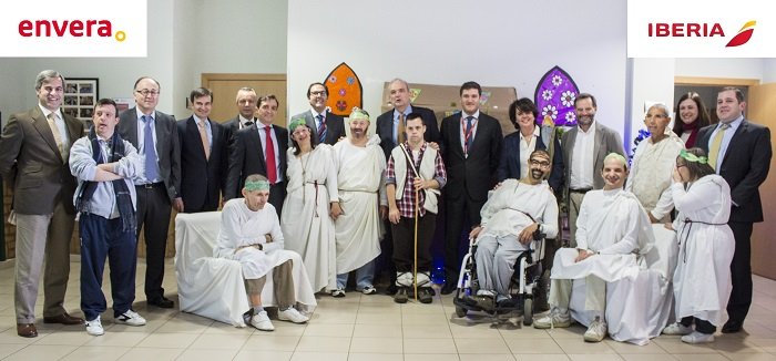 El presidente de Iberia, Luis Gallego, acompañado de su comité de dirección en pleno, ha visitado este miércoles el belén viviente que cada Navidad organiza Envera-APMIB en las instalaciones de Colmenar Viejo. Beneficiarios de la Residencia de Mayores, del Centro de Día para gravemente afectados y del Centro Ocupacional recrearon con los profesionales que trabajan cada día con ellos distintos escenarios del Nacimiento para compartir su ilusión y su alegría, en una jornada de puertas abiertas en la que también participaron familiares y amigos.