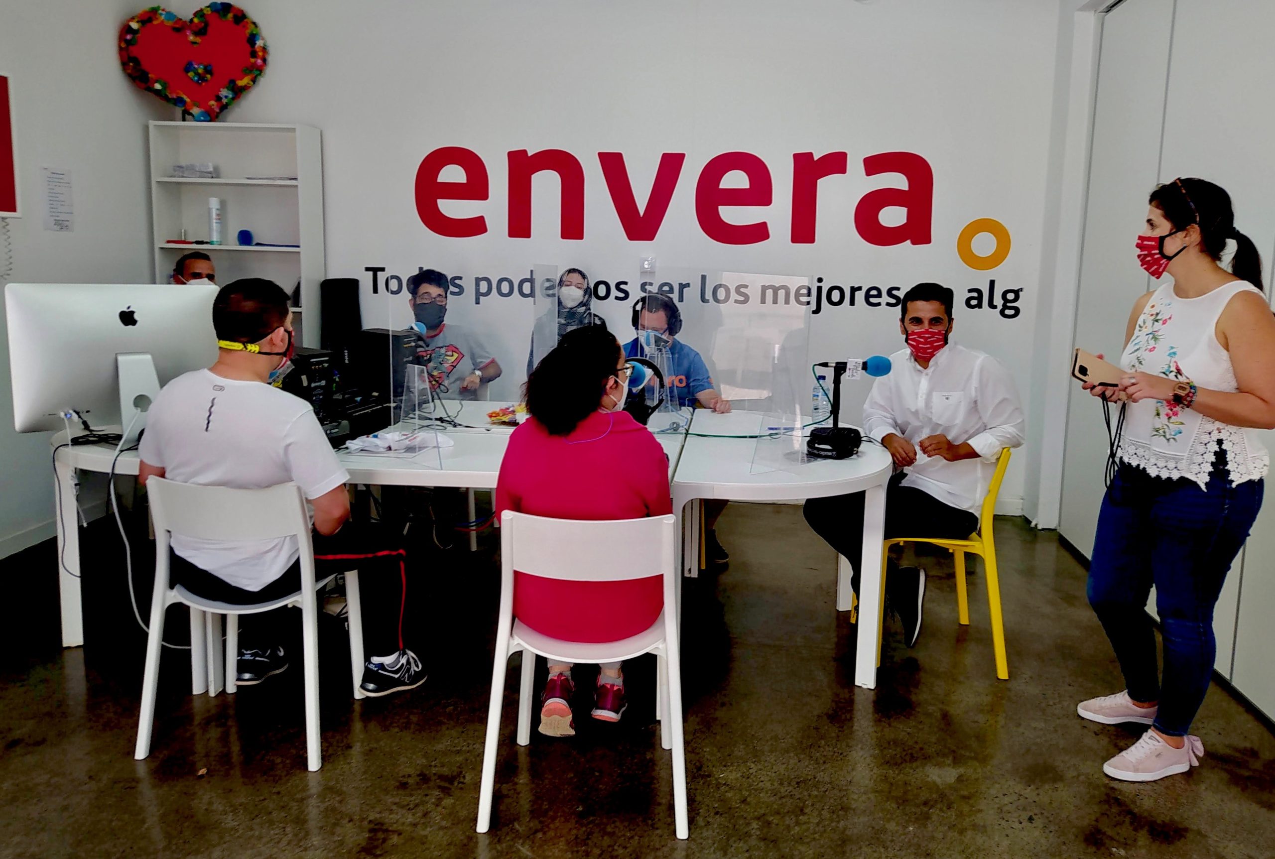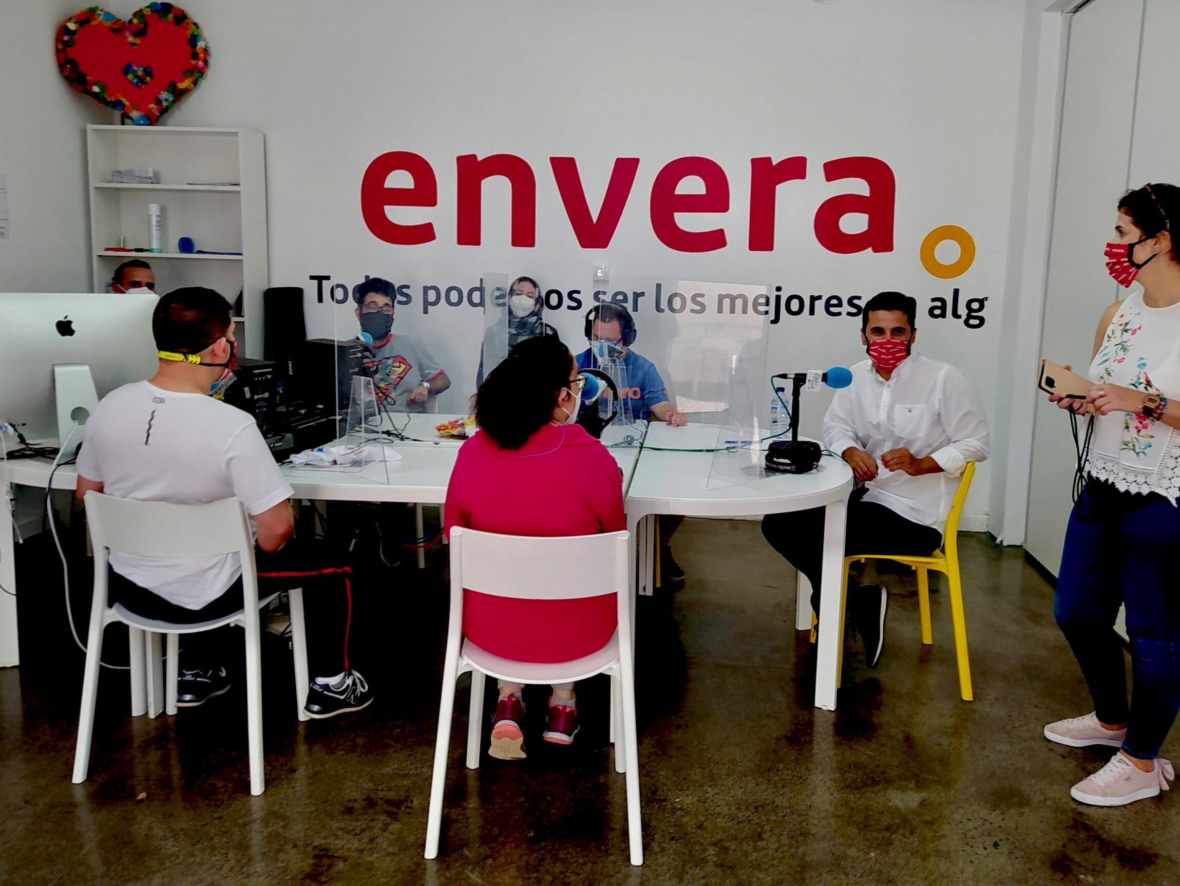 Abría el programa David, nuestro decidido presentador, acompañado por sus compañeros del Centro Ocupacional de Envera en Gran Canaria: Norberto, Carol, Juan Manuel, Loli y Alejandro. Lalla, su profesora, ha coordinado la entrevista brillantemente con la inestimable ayuda de Jéssica, responsable del área ocupacional.