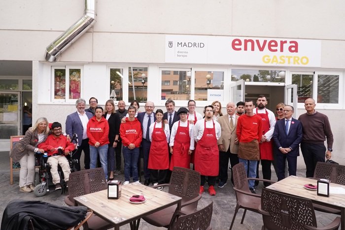 En la inauguración también han participado el presidente de Envera, José Antonio Quintero; el director general de Envera, Enrique Grande; la directora general de Atención a Personas con Discapacidad de la Comunidad de Madrid, Alejandra Serrano; al directora general de Discapacidad del Ayuntamiento de Madrid, Consuelo Alfaro; el coordinador de la Junta de Distrito de Barajas, Luis Sánchez-Cervera; y Mariluz Núñez, directora del Centro Cultural; así como representantes de Iberia, Coca-Cola y Grupo Viajes El Corte Inglés, empresas colaboradoras de Envera. Todos ellos han sido recibidos por personal de eventos con discapacidad intelectual de Envera, alumnos de la entidad y los profesionales de Envera Gastro.