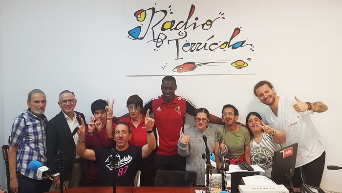 Aprovechando el viaje, M’bengue también fue recibido por el director general de Envera, Enrique Grande, y tuvo la oportunidad de compartir una jornada con las personas con discapacidad intelectual de Envera, quienes le preguntaron en los micrófonos de Radio Terrícola por la Escuela de Fútbol.