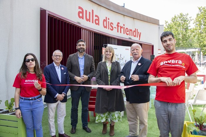 Envera e Iberdrola han inaugurado este miércoles el Aula Dis-Friendly, un espacio al aire libre, sostenible y realizado a partir de materiales reciclados por voluntarios de la compañía junto a alumnos con discapacidad intelectual a lo largo de varias jornadas que han tenido lugar en los últimos seis meses.