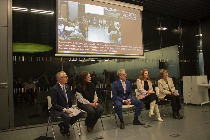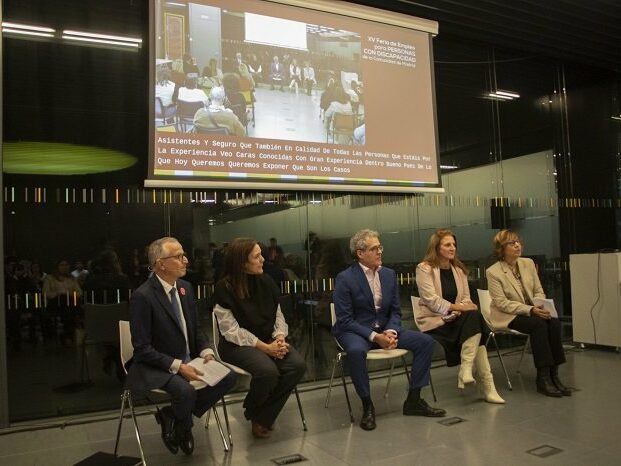 Este martes la XV Feria de Empleo para Personas con Discapacidad de la Comunidad de Madrid, celebrada en La Nave, acogió la mesa redonda Experiencias de éxito en la incorporación de personas con discapacidad en el mercado ordinario, un encuentro moderado por la directora general de Empleo, Belén García, y en el que participaron Iberia, Envera, la Fundación Goob Job y CEESUR.