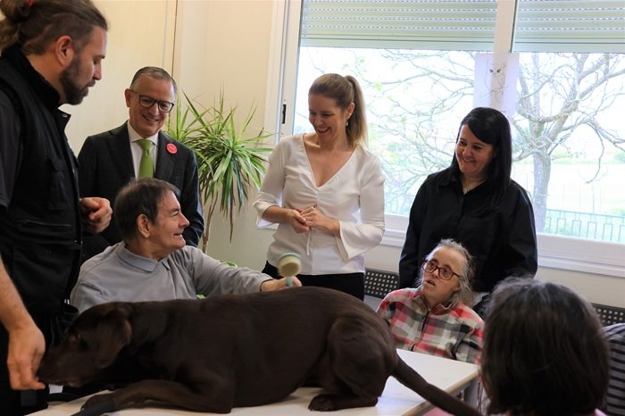 Dávila ha visitado, junto con el director general de Envera, Enrique Grande, diferentes servicios como la residencia para mayores de 45 años con envejecimiento prematuro, con 32 plazas y diferentes salas de terapia, donde se realizan actividades como la terapia asistida con perros, que ofrece importantes beneficios a los residentes. También ha visitado el dispositivo de atención diurna para personas con grandes necesidades de apoyo y, por último, el centro ocupacional, que cuenta con 114 plazas, y donde, además de conocer a beneficiarios y profesionales, ha participado en un programa de Radio Terrícola, realizado por reporteros con discapacidad intelectual.