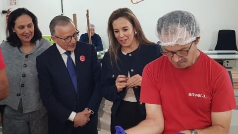 La consejera ha mostrado interés por la carrera profesional que desarrollan las personas con discapacidad, especialmente intelectual, gracias al trabajo sostenible en Envera como el caso de Julián: «Llevo más de 35 años trabajando en Envera y me quedan dos para jubilarme», ha explicado a la representante del Gobierno de Canarias.