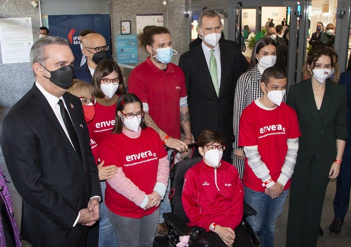 Junto a los Reyes, también se han interesado por el proyecto «Disfriendly» de Envera el presidente de la República Dominicana, país invitado en esta 42ª edición de Fitur; la ministra de Industria, Comercio y Turismo, Reyes Maroto; la presidenta del Congreso de los Diputados, Meritxel Batet; la presidenta de la Comunidad de Madrid, Isabel Díaz Ayuso; y el alcalde de la capital, José Luis Martínez-Almeida.