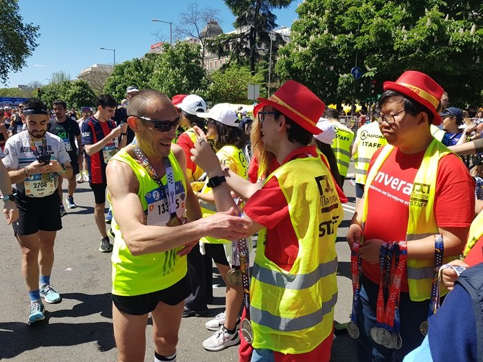 En concreto, más de una decena de personas con discapacidad de Envera, junto a voluntarios de la ONG y de Iberia, ayudaron en la entrega de medallas a los corredores que alcanzaron la meta, compartiendo momentos muy emotivos y constatando que la inclusión es clave del impacto social en grandes eventos.