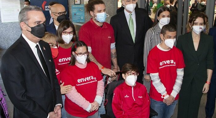Los Reyes Felipe VI y Letizia han saludado a las personas con discapacidad de Envera durante la inauguración oficial de Fitur y han dado la enhorabuena a la entidad sin ánimo de lucro por la labor social que realiza desde su nacimiento en 1977, en el seno de la compañía Iberia, con el objetivo de que las personas con discapacidad intelectual ocupen con dignidad su lugar en el mundo.
