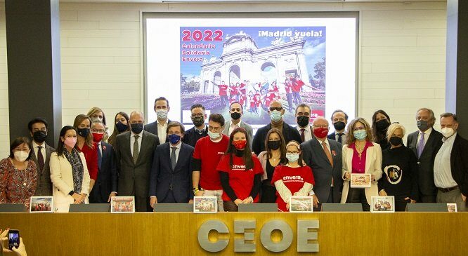 El alcalde de Madrid, José Luis Martínez-Almeida, ha presidido esta mañana la presentación del Calendario Solidario Envera 2022, del que protagoniza la portada junto a personas con discapacidad intelectual de Envera y el presidente de Madrid Foro Empresarial. El acto ha tenido lugar en la sede de la Confederación Empresarial de Madrid (CEIM) y se enmarca en la conmemoración del Día Internacional de las Personas con Discapacidad, que se celebra mañana.