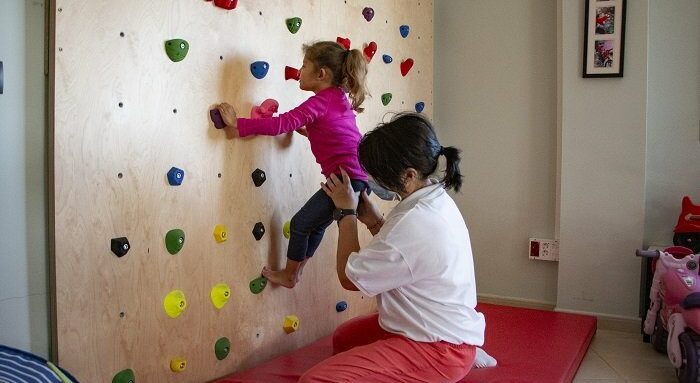 El Servicio de Atención Temprana de Envera cuenta con un rocódromo financiado por la Fundación Ibercaja y del que se benefician los más de 200 niños que acuden a este centro de referencia en la atención a menores con discapacidad o trastornos en su desarrollo de la Comunidad de Madrid.