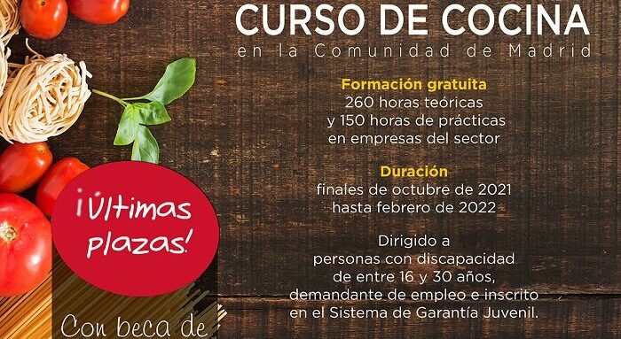 Desde finales de octubre hasta febrero de 2022, se celebra el curso de cocina organizado por Envera en la Comunidad de Madrid, que cuenta con el apoyo de la Fundación ONCE y de la Unión Europea y que, además de ser gratuito para los alumnos, está becado para cada uno de ellos con 300 euros. Esta formación está dirigida a jóvenes con discapacidad intelectual de entre 16 y 30 años, demandantes de empleo e inscritos en el Sistema de Garantía Juvenil.