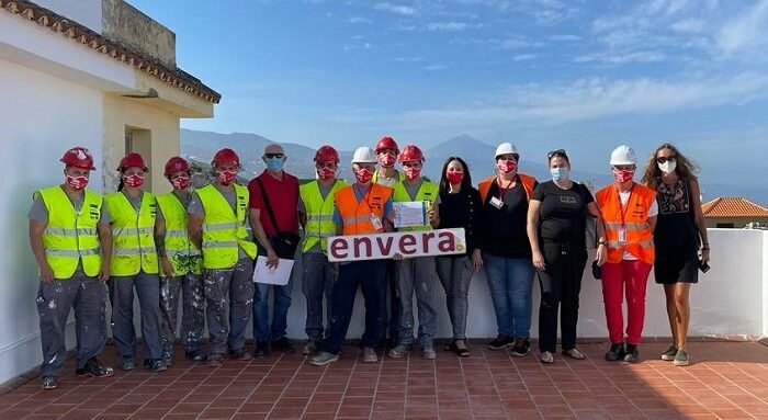 los responsables de la FLC han comprobado de primera mano el trabajo realizado en Envera por sus alumnos en prácticas de los Programas de Formación en Alternancia con el Empleo Esfuerza-T Pintando y Esfuérzate Construyendo que desarrollan desde la Fundación Laboral de la Construcción