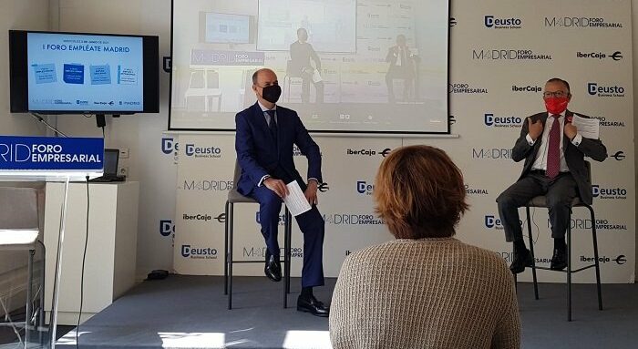 La vicealcaldesa de Madrid, Begoña Villacís, y el presidente de Madrid Foro Empresarial, Hilario Alfaro, inauguraron este miércoles el I Foro Empléate Madrid en la sede de Deusto Business School. Un acto en el que un total de ocho expertos, entre ellos el director general de Envera, reflexionaron sobre las oportunidades de empleo que generan los nuevos escenarios en los que las empresas se han visto obligadas a moverse como son la digitalización, la educación, la sostenibilidad y la diversidad.