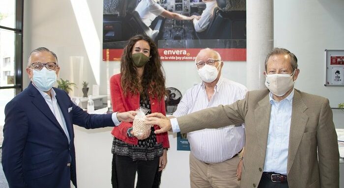Envera ha recibido 2.000 kilogramos de garbanzos gracias al apoyo de la Fundación SEPLA-Ayuda y que han sido donados por Javier González y Elisa Ostos con la colaboración de la compañía andaluza Cereales Astigi. Sofía González, hija de Javier y de Elisa, así como los presidentes de SEPLA-Ayuda, Vicente Alonso Fogué ‘Titón’, y de Envera, José Antonio Quintero, han mostrado su satisfacción por esta colaboración que ha permitido ayudar a cerca de un millar de familias.