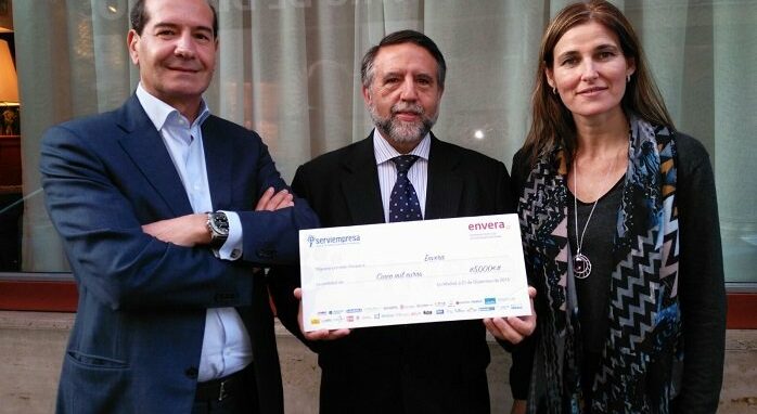 El Grupo Serviempresa, formado por las más representativas empresas del sector de suministro de material de oficina y consumible informático repartidas por toda España, ha donado a Envera 5.000 euros para la ampliación en 13 plazas más de la Residencia de Colmenar Viejo. Dely Fenoy, gerente de esta alianza empresarial, junto a otro de sus representantes, Antonio Gayo, fueron los encargados de entregar al director general de Envera una donación “que es fruto –manifestaron- del esfuerzo de todos y cada uno de los integrantes de esta plataforma”.