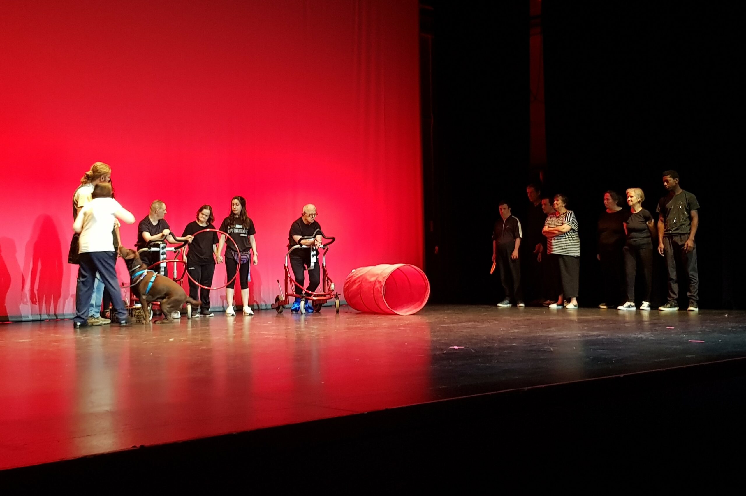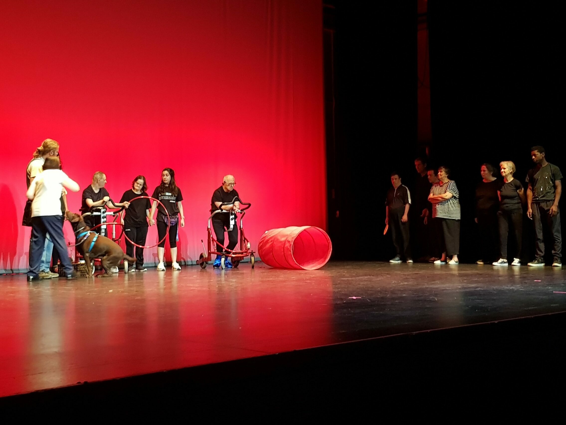 La obra, pensada, preparada y realizada por ellos mismos junto a los profesionales que les acompañan cada día, ha mostrado también sobre el escenario la importancia de actividades como la terapia asistida con animales o la musicoterapia.