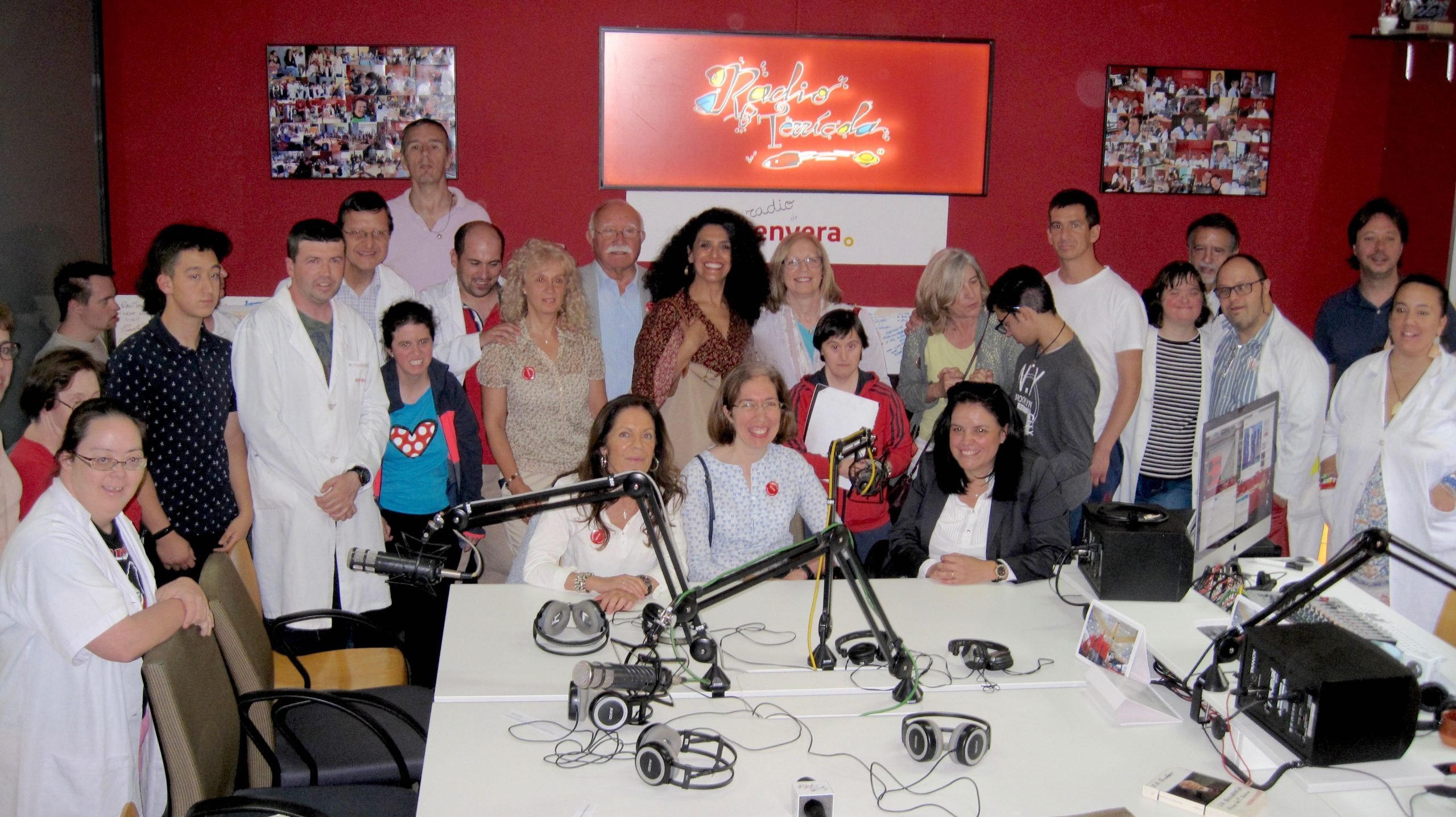 Frente a nuestros micrófonos se sentó un numeroso equipo de entrevistadores pertenecientes al Centro Ocupacional y del otro lado dos representantes de la nutrida comitiva ministerial: Laura Diego y Begoña González.