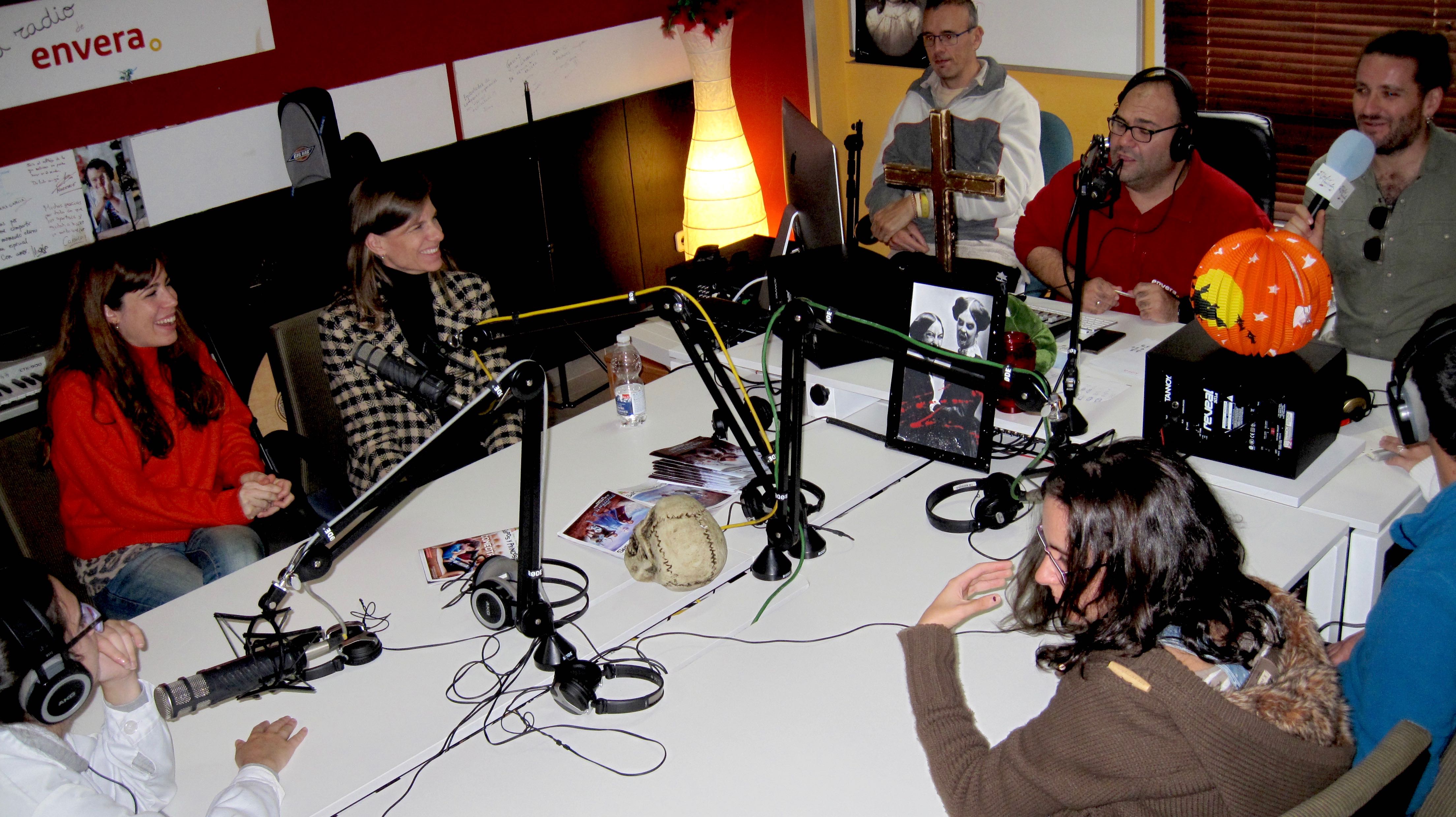 Con el estudio de Radio Terrícola lleno de arañas gigantes, fotografías siniestras, alguna calavera, sangre salpicada por las paredes y un ambiente musical un tanto inquietante, la irrupción en pleno programa de Nora Curtis y Celia Arias nos ha devuelto la cordura que perdimos hace unos días cuando comenzamos a preparar la fiesta de Halloween, que mañana celebraremos pavorosamente por toda la asociación.